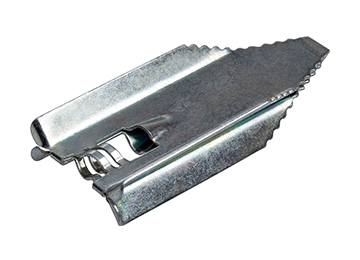 ファスナーは中空構造になっている石膏ボードやALC等の硬質材に、棚などを取りつけたい時に使用します。石膏ボードに下穴をあけ、ハンマーでファスナーを打ち込むと徐々にファスナーが開きます。このファスナーにネジが取り付けられるようになります。XLは石膏ボード13-16mmに対し、耐荷重は水平30kg、垂直70kg、まで対応しています。